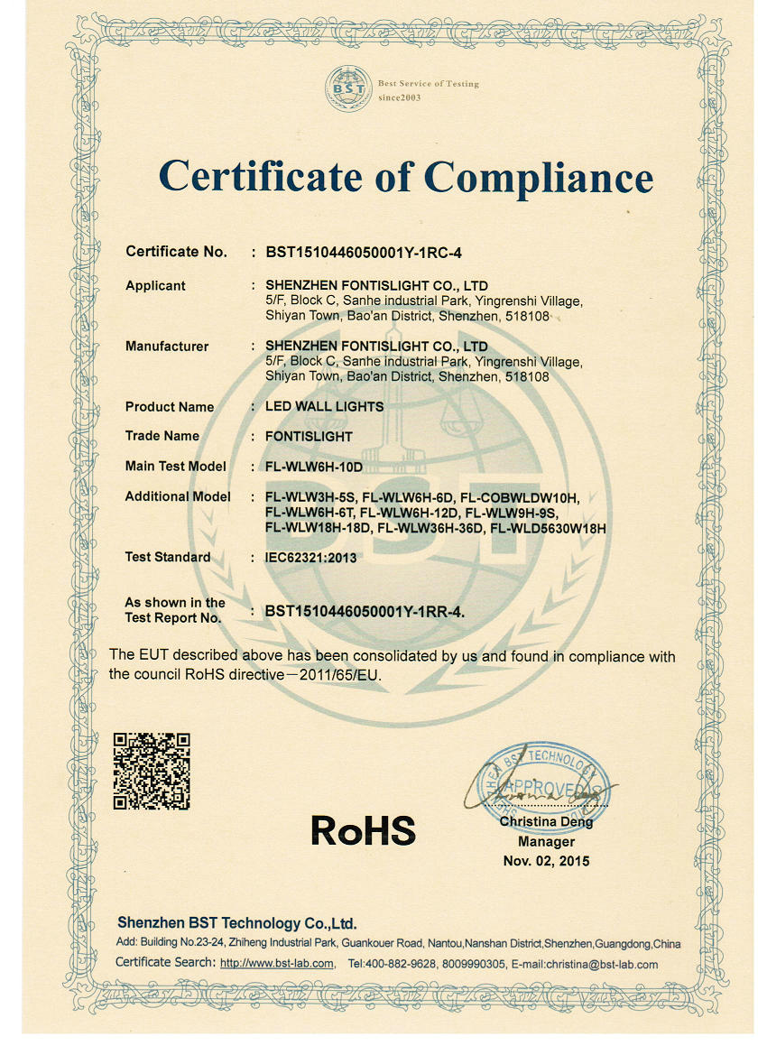 RoHS for Wall Lights