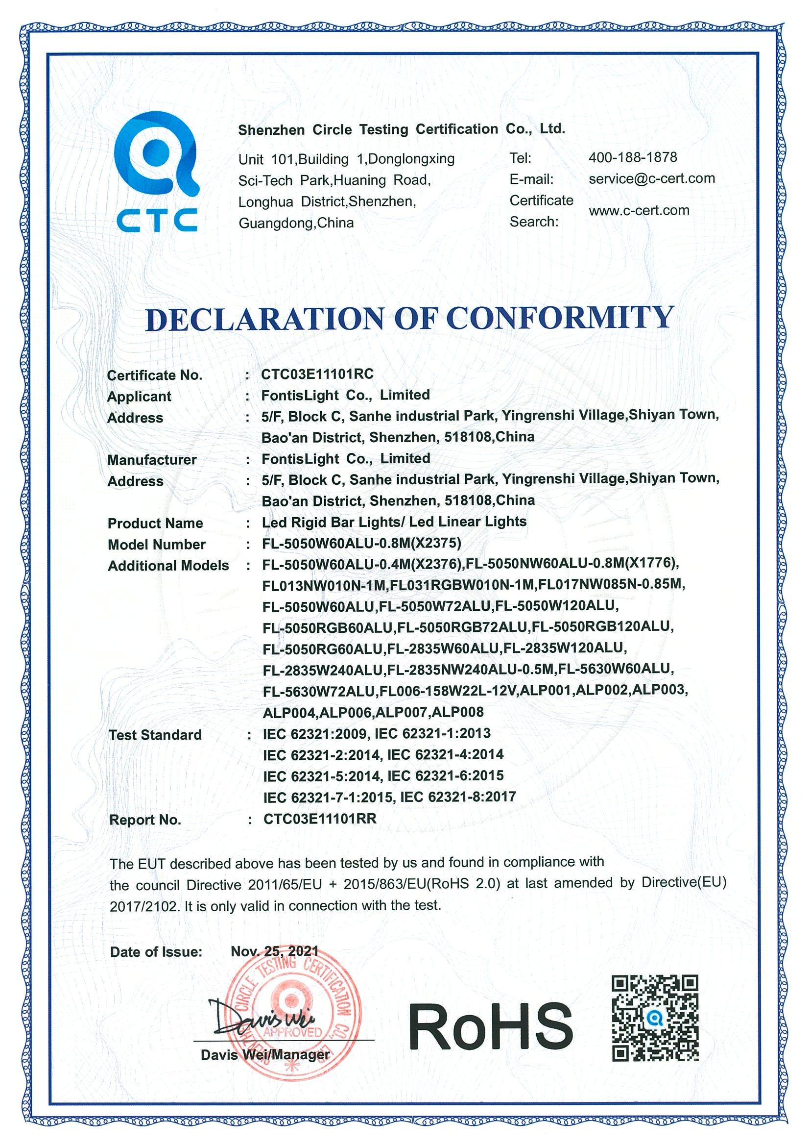 RoHS - LED Rigid Light Bar