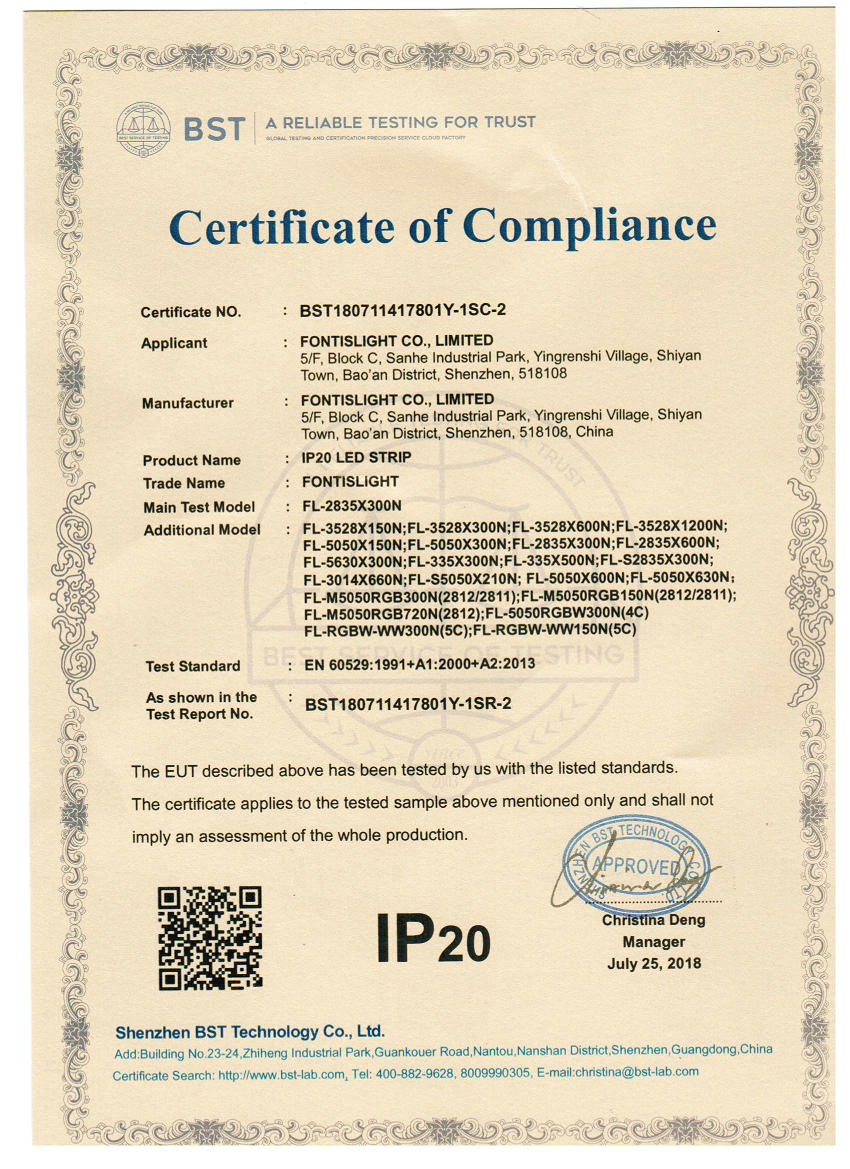 IP20 certificate of LED strips
