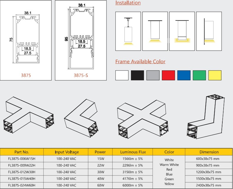 1 . L1200mm*W38*H72mm LED Linear lights