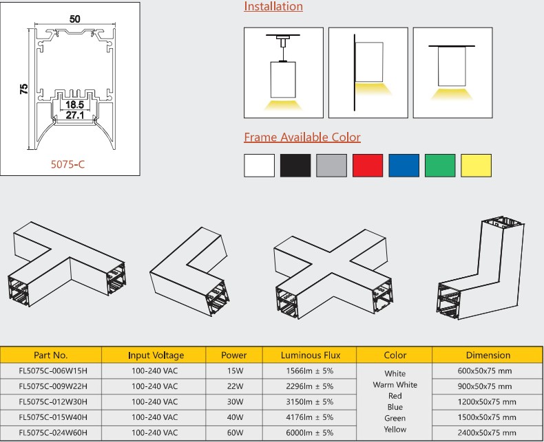 1 . L1200mm*W50*H75mm LED Linear lights