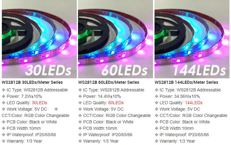 5. LED Quantity: 60leds+60pcs IC per meter, 300leds/roll
