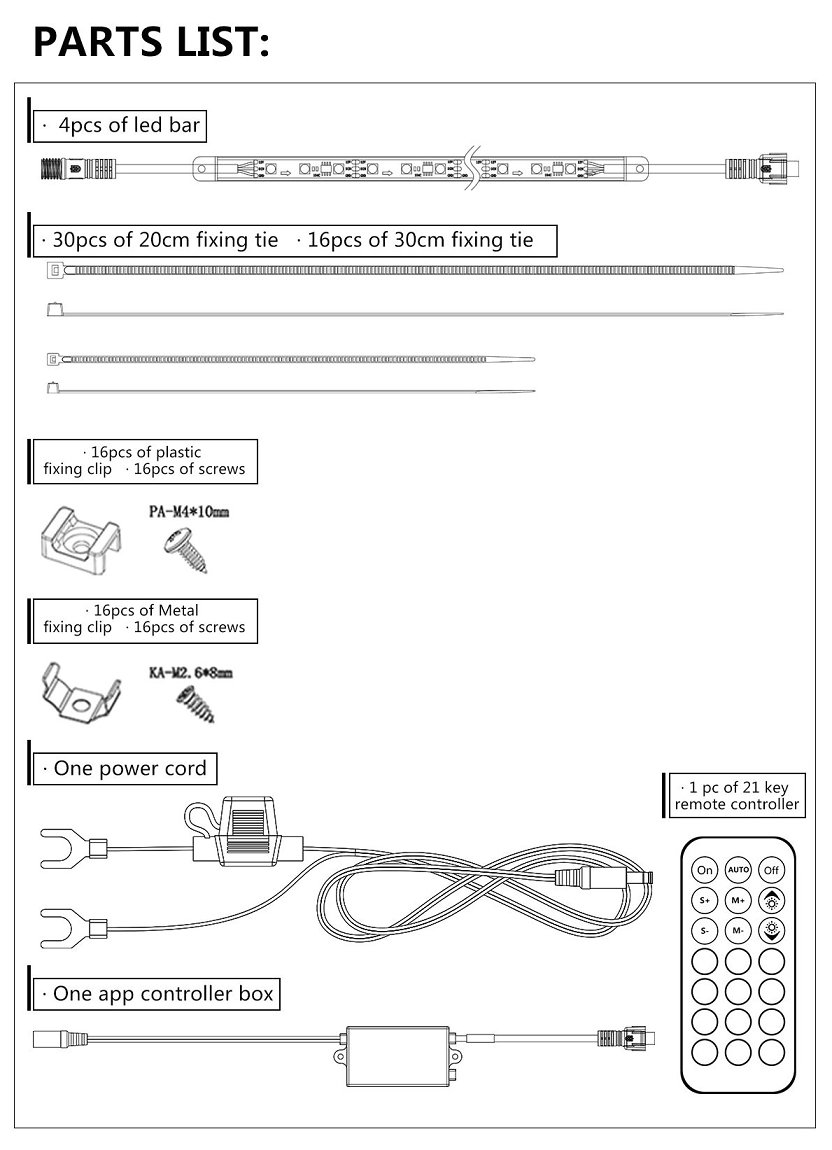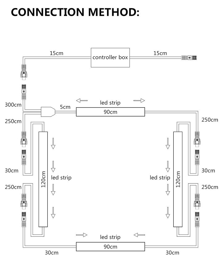 - 2 x LED STRIP LIGHT (90cm) + 280cm extension wires
