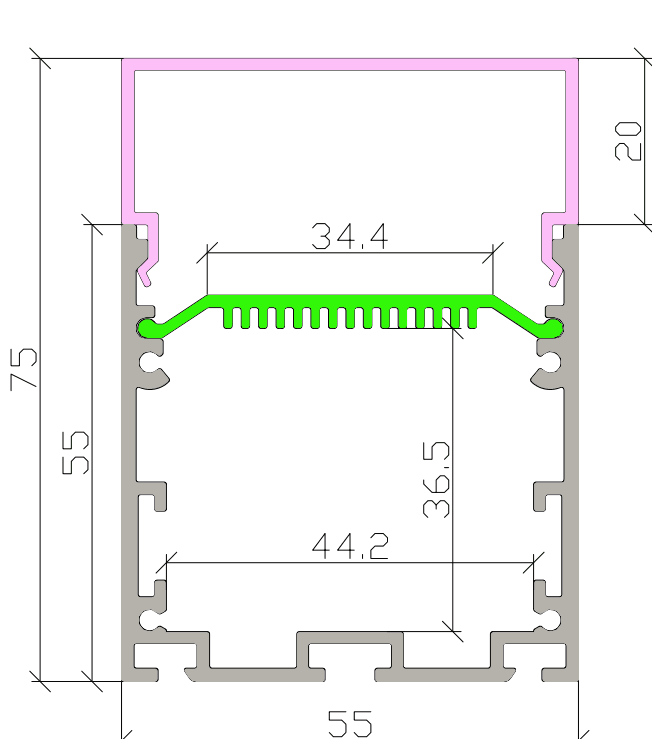 | Size | 1000/2000x55x75mm |